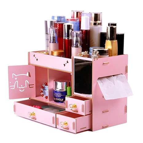 Fidgetgear Home Diy Large Capacity Wooden Cosmetic Case Makeup