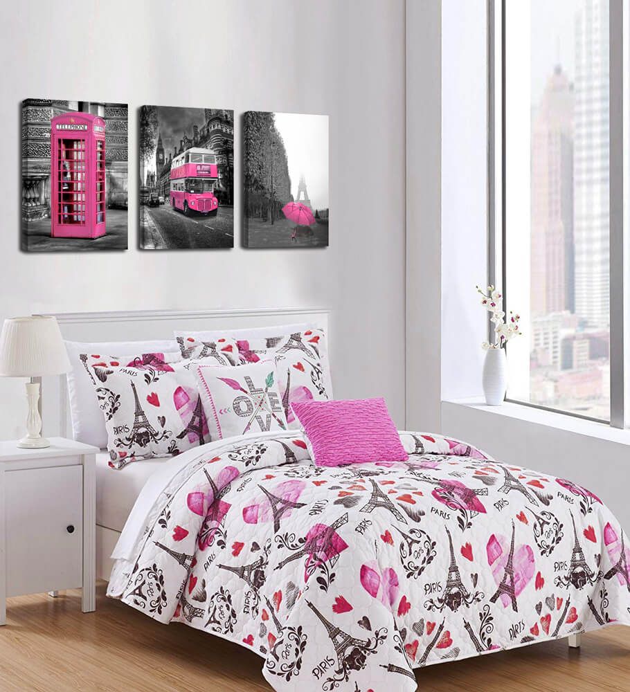2020 Girls Pink Paris Theme Room Decor Wall Art Canvas Black And