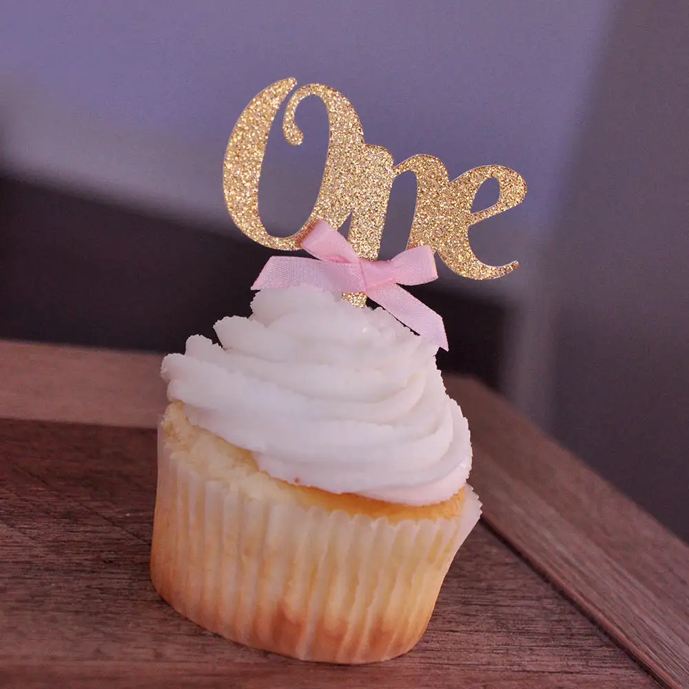 6pcs One Glitter Paper Cupcake Toppers 1st Birthday Party
