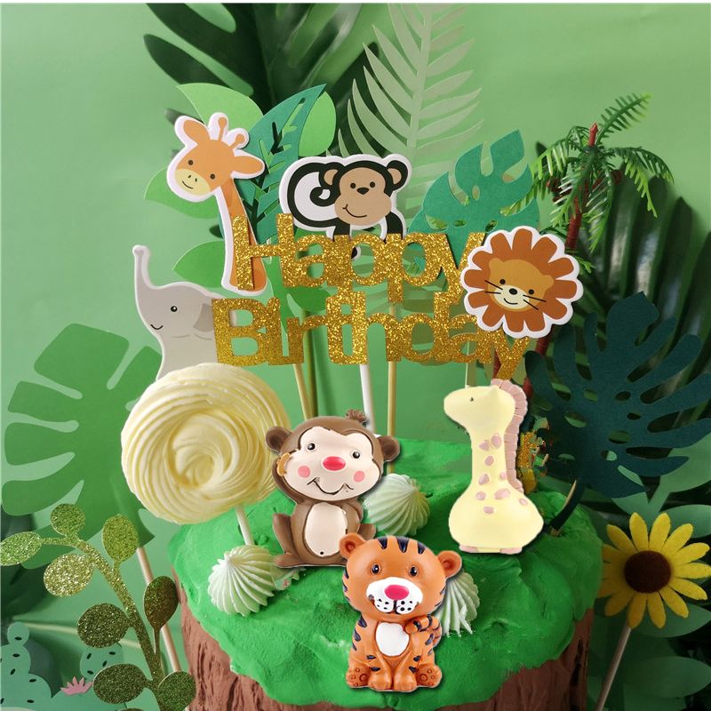 2020 Wild Animals Theme Cake Toppers Giraffe Monkey Tiger Cake