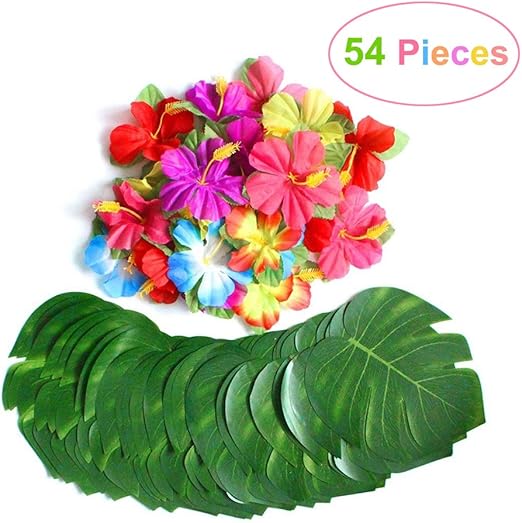 Amazon Com 54pcs Party Tropical Leaves Flowers Artificial Palm