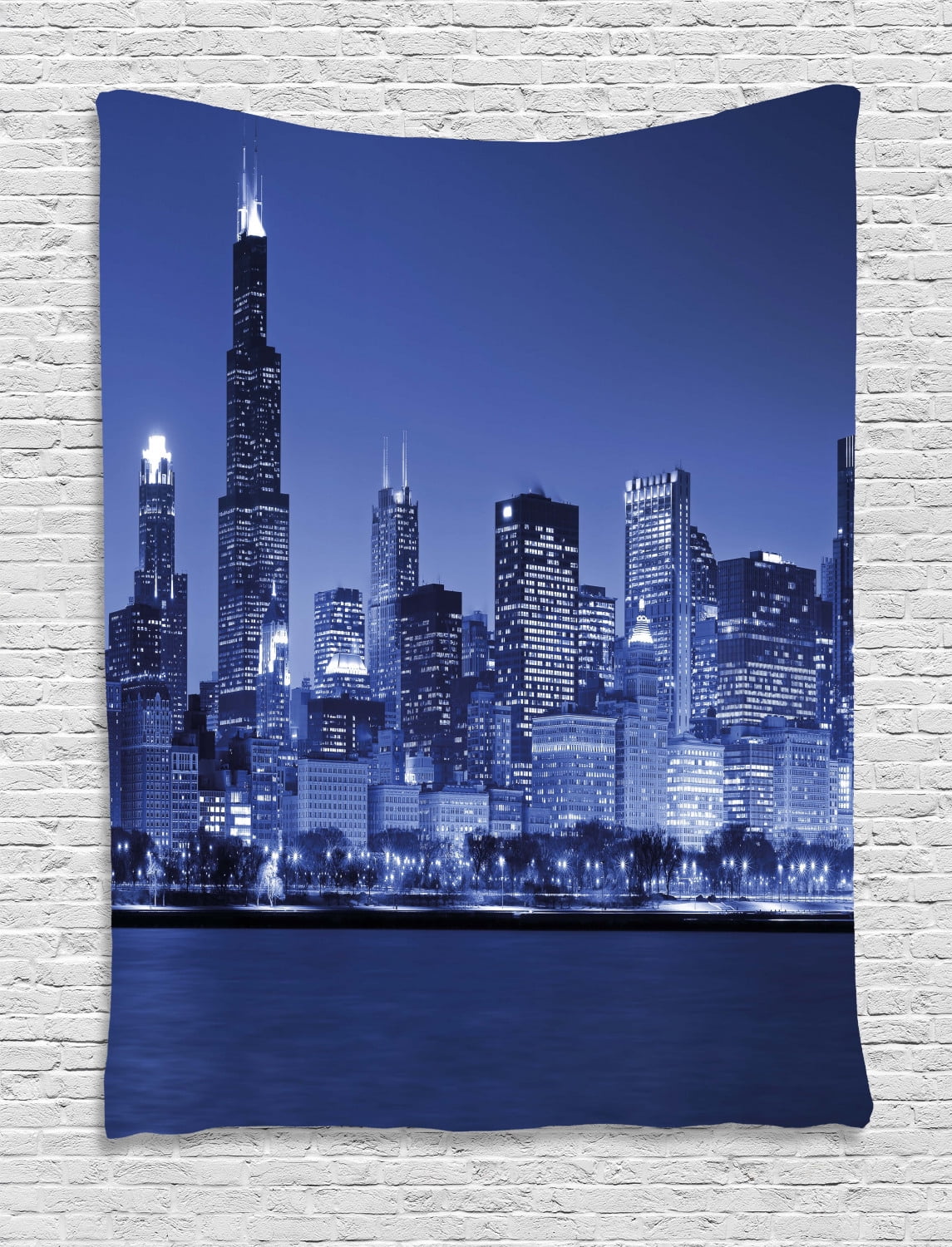 Usa Tapestry Chigago City Skyline At Night With Tall Buildings
