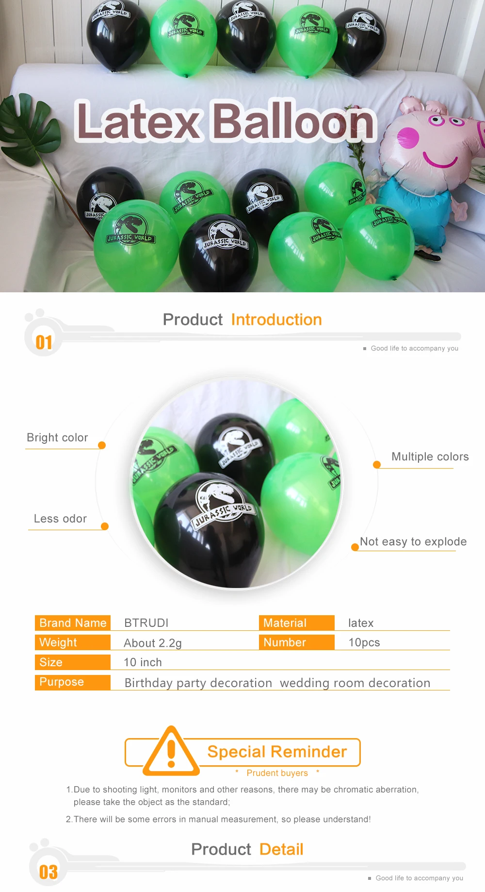 Btrudi 10pcs Dinosaur Print Latex Balloon 10inch Black And Green