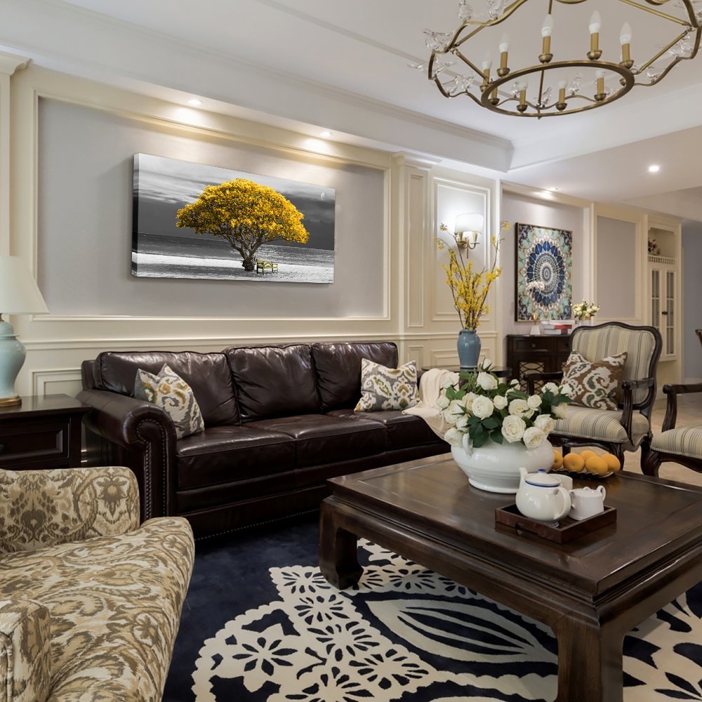 Oversized Contemporary Art Large Living Room Decor Yellow Grey