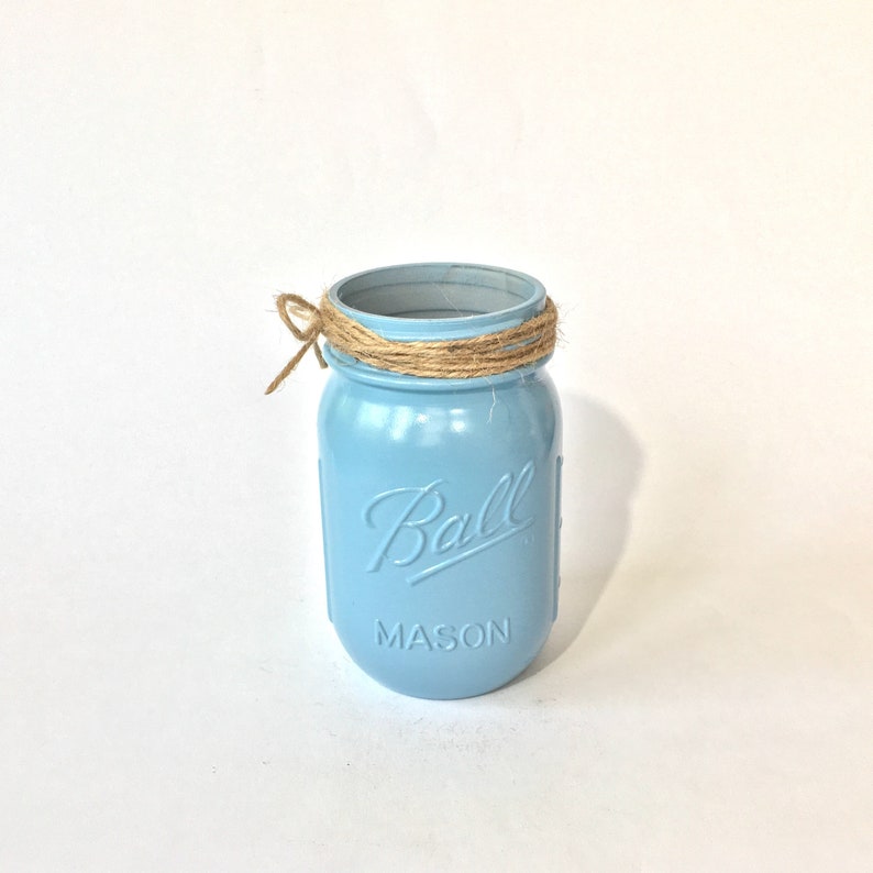 French Blue Mason Jar Pint Jute Twine Accent Mason Jar Etsy