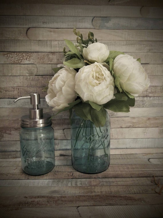 Rustic Farmhouse Aqua Blue Mason Jar Kitchen Decor Vase With Etsy