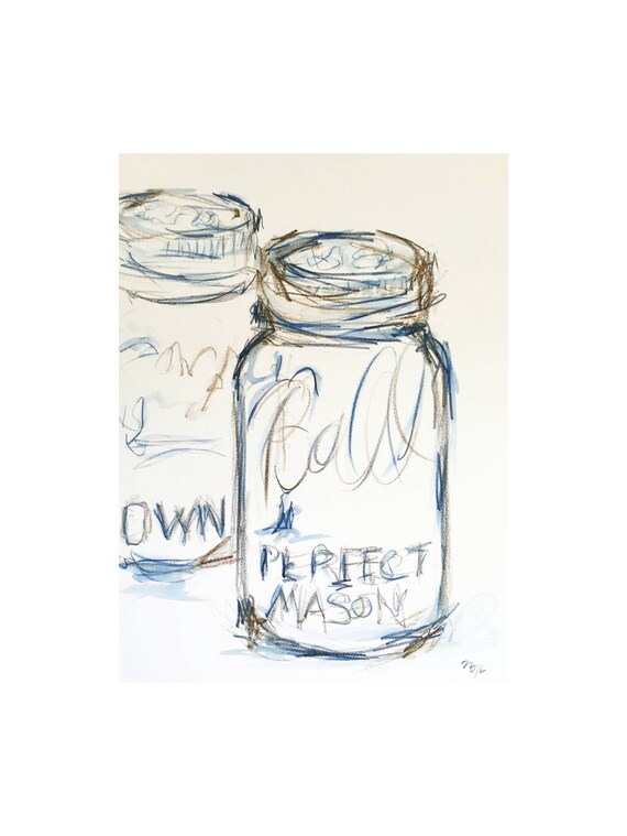 Mason Jar Print Rustic Kitchen Decor Blue Mason Jar Wall Etsy