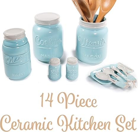 Mason Jar Kitchen Utensil Set Includes Cookie Jar Utensil