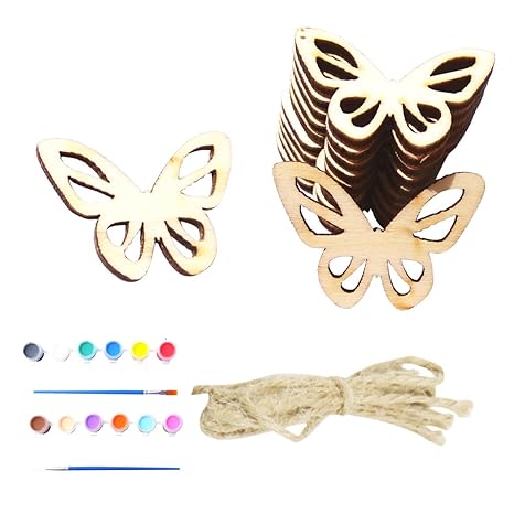 Segolike Pack Of 24 Blank Butterfly Wooden Shape With Color Paints