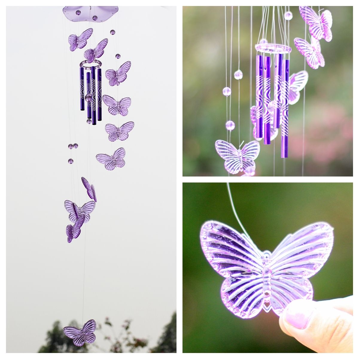 Purple Crystal Butterfly Wind Chime Bell Ornament Yard Living