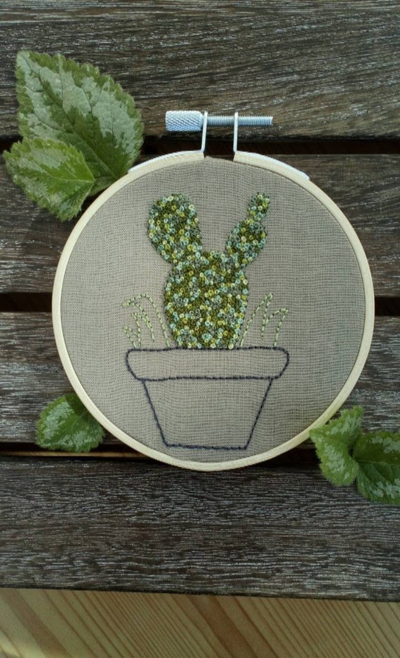 Small Cactus Embroidery Hoop Wall Hanging Green Tones Etsy