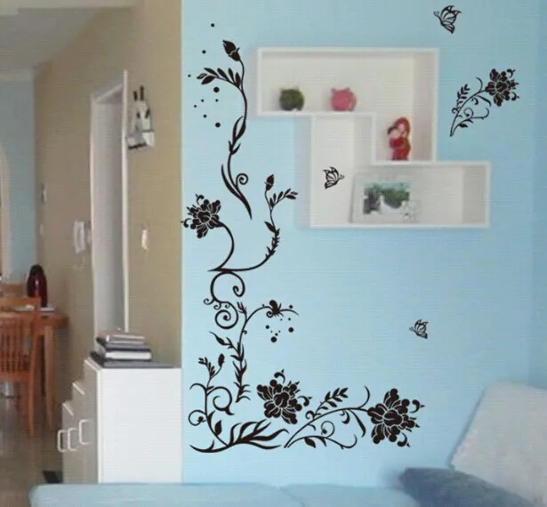 Black Flower Vine Butterfly Vinyl Wall Stickers Home Decor Rooms