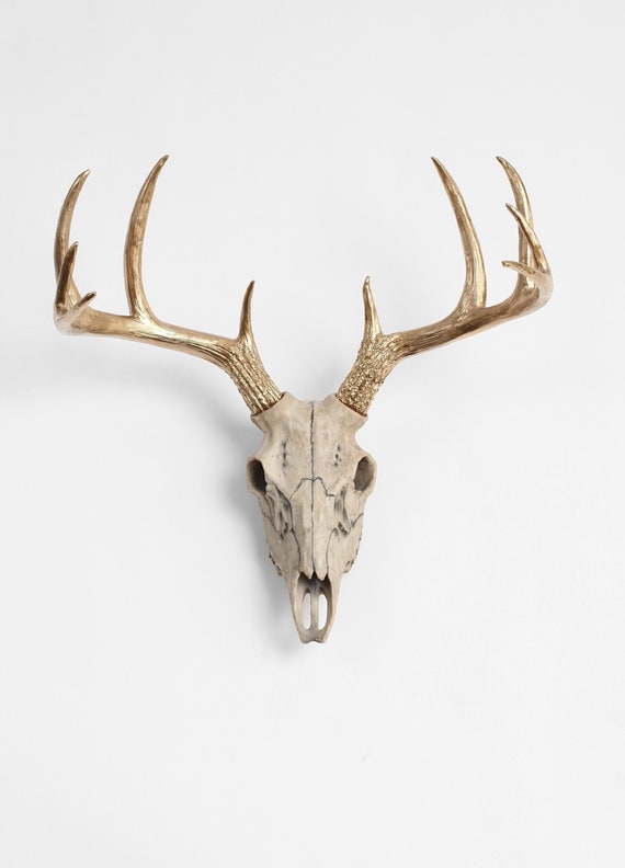 White Faux Deer Skull The Deer Skull In White W Gold Antlers