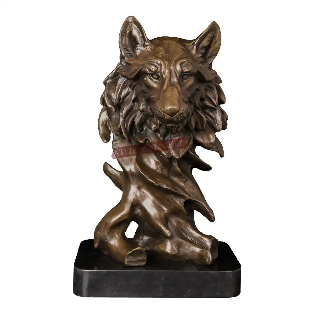 Bronze Wolf Head Statue Sculpture Copper Animal Bust Figurine