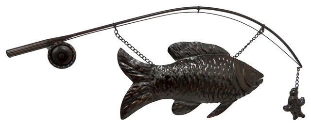 Large Metal Catch Of The Day Fish And Pole Decorative Wall