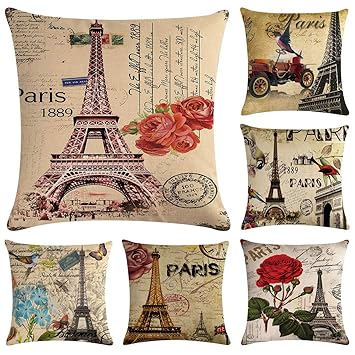 Amazon Com Faylapa 6 Pack Eiffel Tower Cotton Linen Pillow Cases