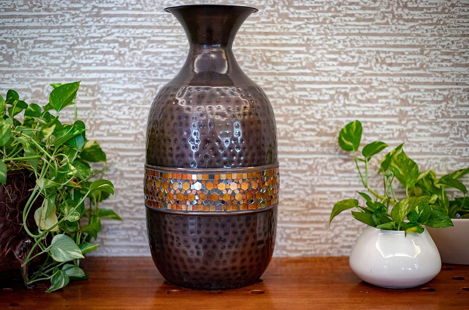 Malhar Handicraft Metal Flower Vase With Glass Decoration For