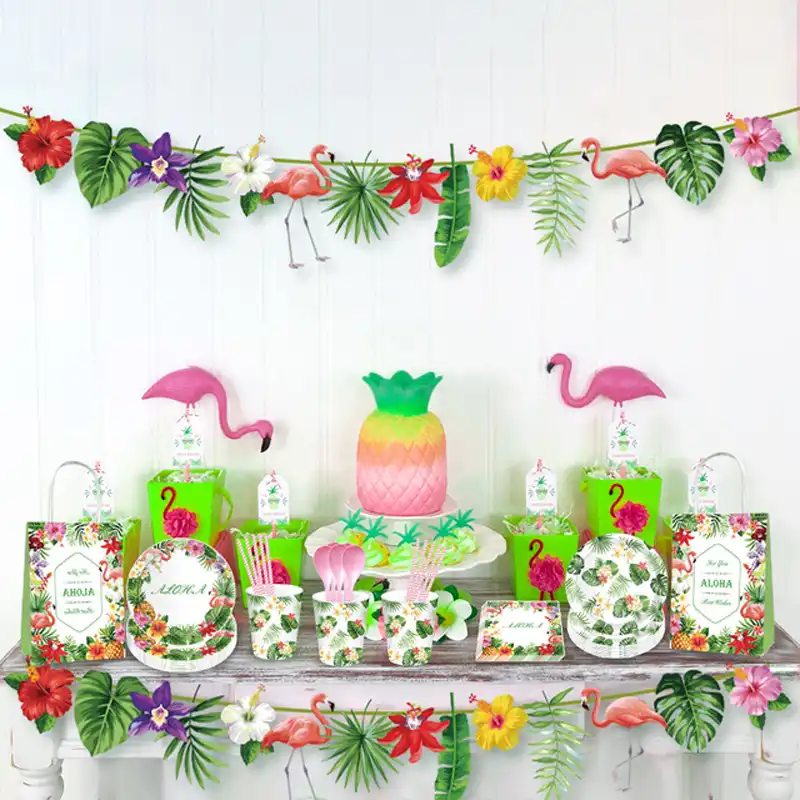 Omilut Tropical Flamingo Birthday Supplies Flamingo Palm Leaf