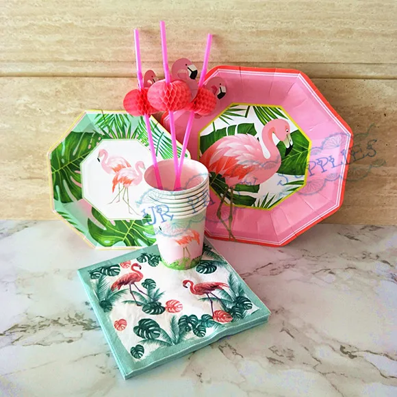 48 Sets Flamingo Party Table Setting Tropical Party Decor Paper