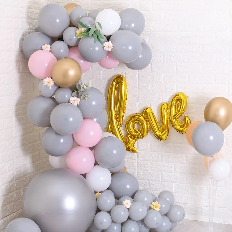 Macaron Balloons Arch Kit Pastel Grey Pink Balloons Garland Rose