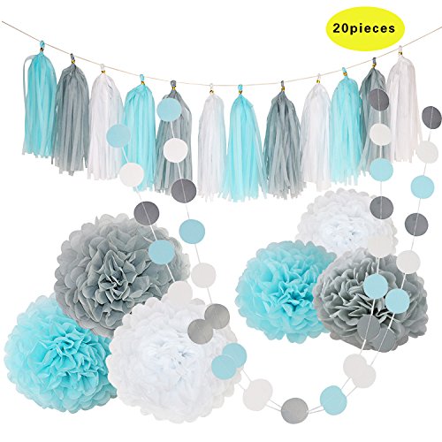 Amazon Com Mint Grey Baby Shower Decorations Mint Grey White