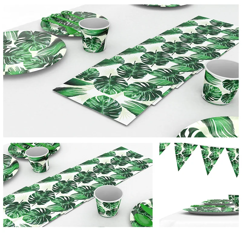 Green Hawaiian Leaf Disposable Tableware Set Birthday Party Summer
