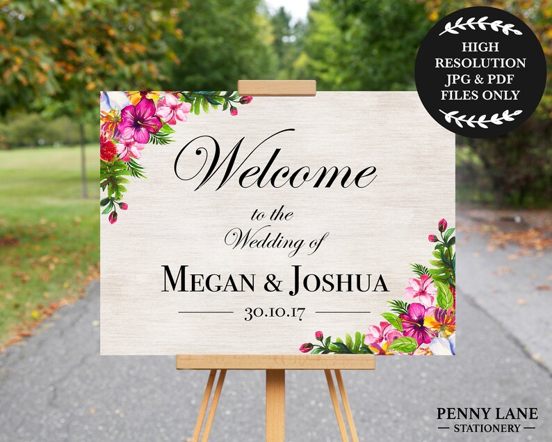 Tropical Wedding Poster Hawaiian Welcome Sign Wedding Etsy