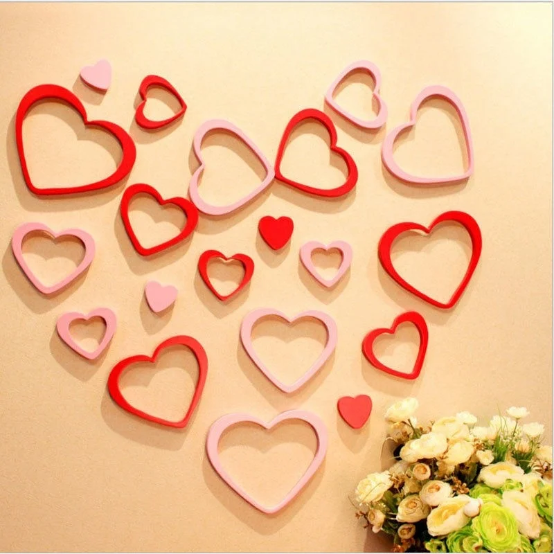 Hot Selling 5 Pcs 3d Diy Wall Stickers Heart Shape Indoors
