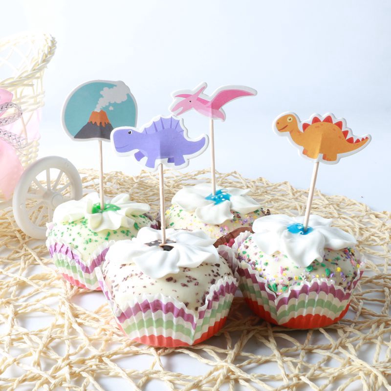 24pcs Lot Cute Dinosaur Cupcake Topper Theme Cartoon Kids Party