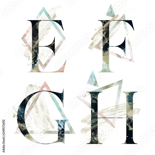 Floral Alphabet Set Set Of Navy Letters E F G H With Flowers