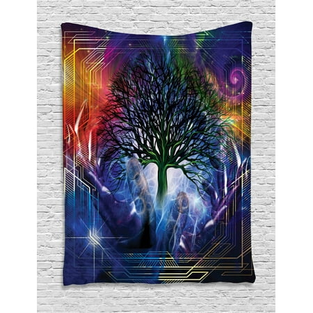 Nature Tapestry Human Hand Grabs A Leafless Tree Vitality Symbol