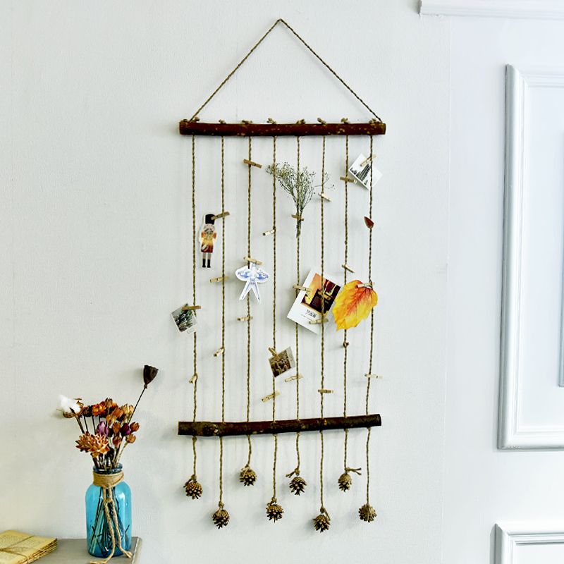 Retro Rustic Hemp Rope Natural Wooden Polaroid Photo Wall Murals