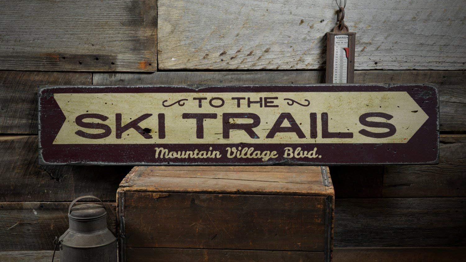 Dason Ski Trails Arrow Wood Sign Personalized Skiing Location