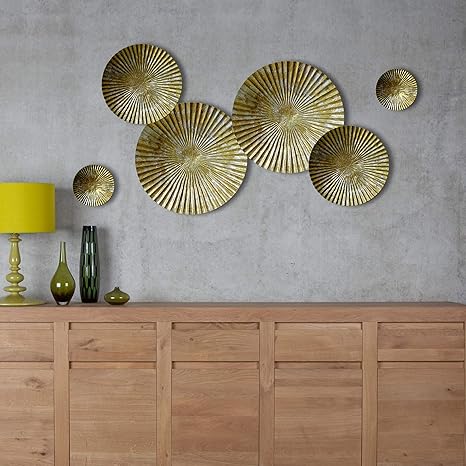 Craftter Set Of 3 Bright Gold And Silver Color Circles Metal Wall