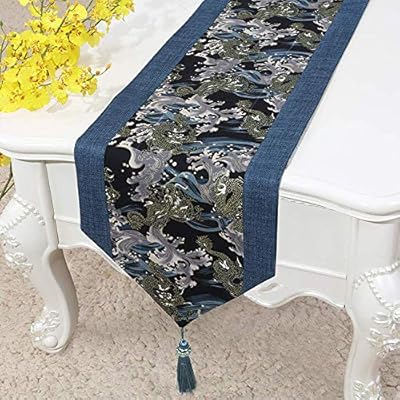 Table Runner Vintage Table Runner Blue Dragon Cotton Linen Printed