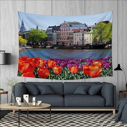 Landscape Wall Tapestry European City Holland Amsterdam Scenery Of