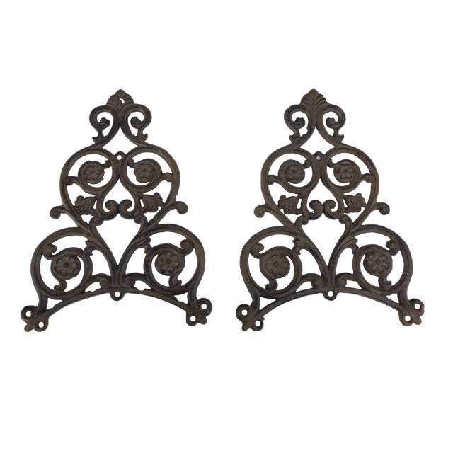 Vintage Cast Iron Architectural Garden Art Wall Decor A Pair