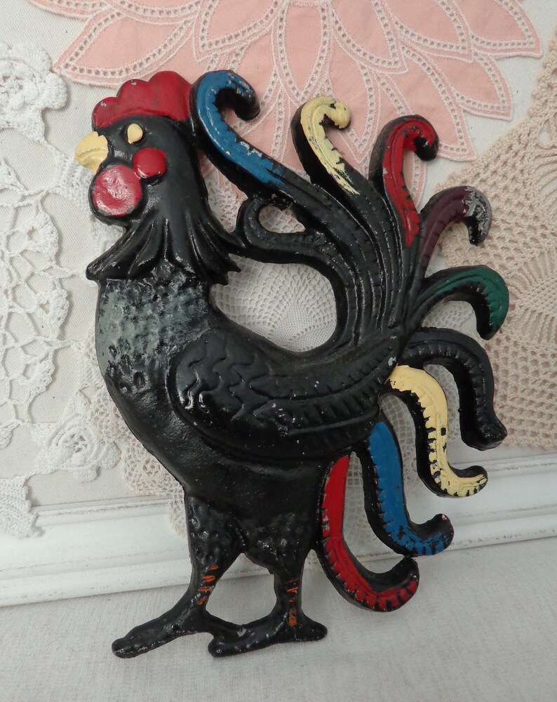 Vintage Cast Iron Rooster Wall Decor Vintage Hand Painted Etsy