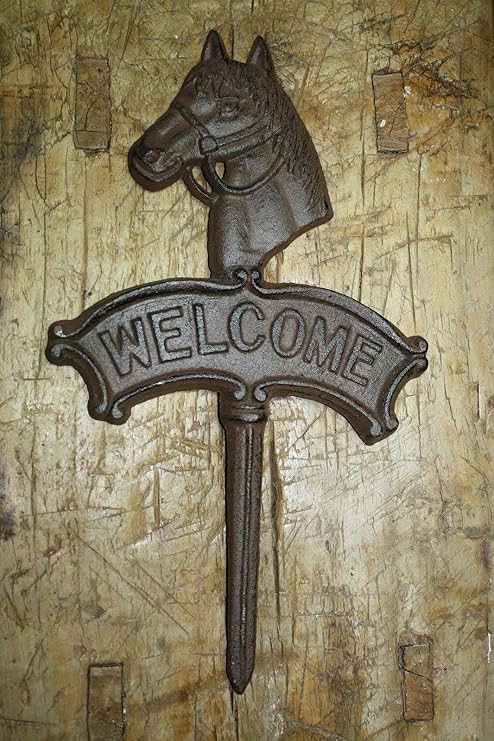 Amazon Com Jtw Heavy Cast Iron Antique Style Welcome Sign Horse