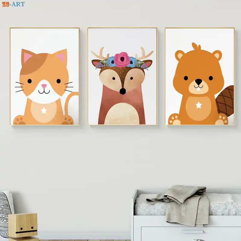 Baby Animals Canvas Painting Unicorn Cat Deer Posters And Prints