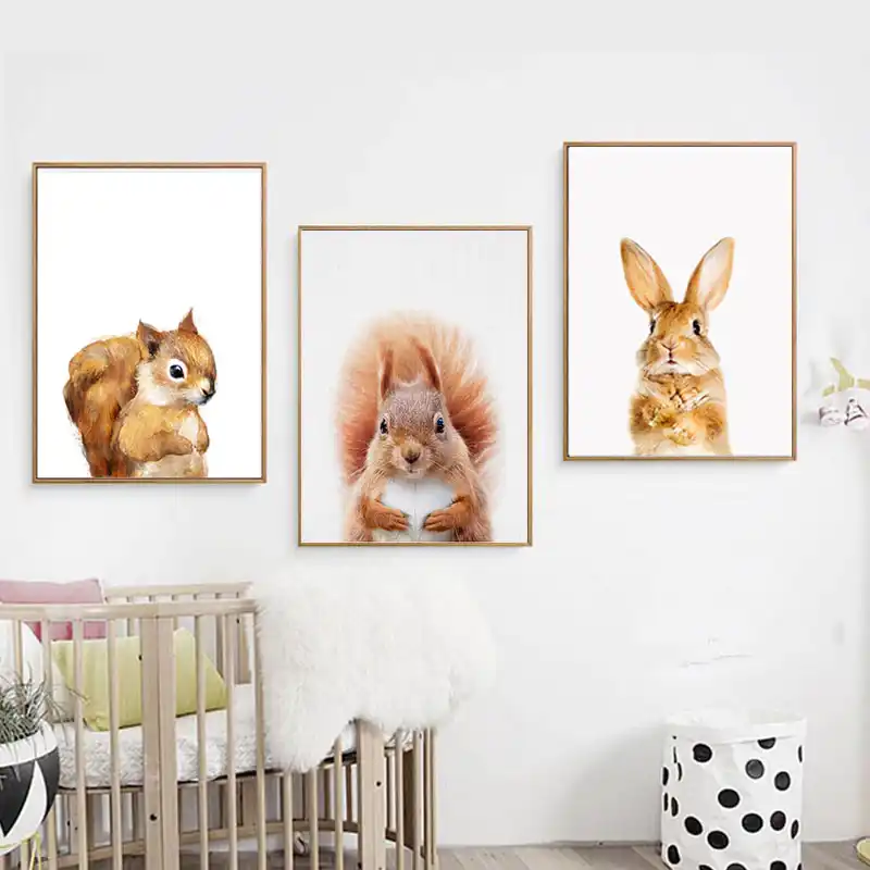 Squirrel Print Woodland Nursery Wall Art Decor Forest Animals Baby