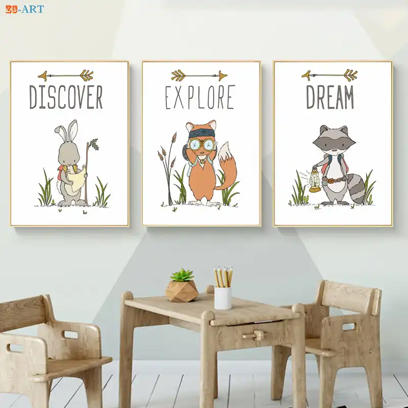 Woodland Nursery Wall Art Dream Adventure Pack Themed Poster Fox