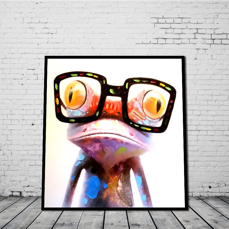 Miico Hand Painted Oil Paintings Animal Modern Art Happy Frog With