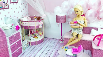Miniature Dollhouse Barbie Nursery Room Lamp Baby Bed Sofa