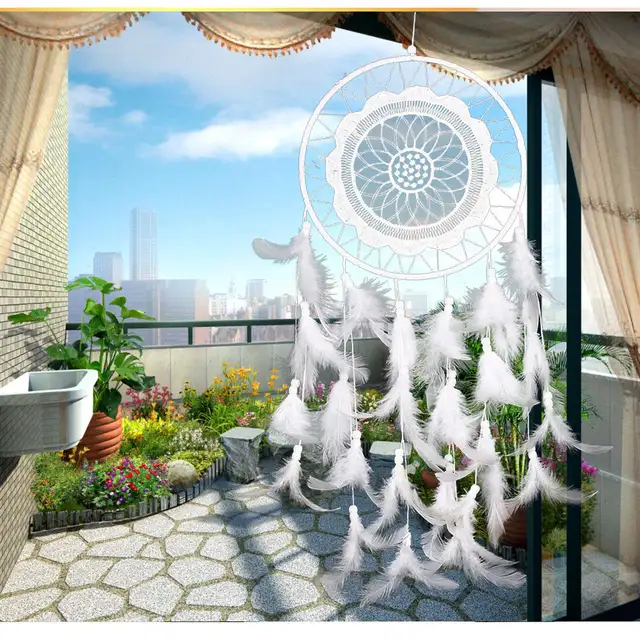 White Lace Flower Dreamcatcher Wind Chimes Indian Style Feather