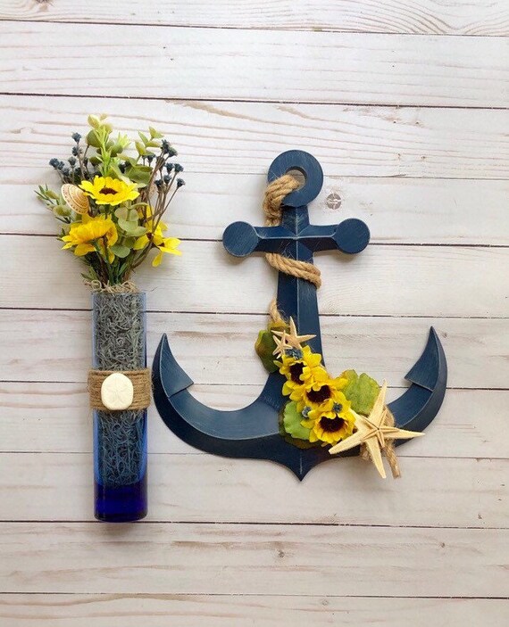 Clearance Sale Anchor Wall Decoration Set Coastal Anchor Vase Etsy
