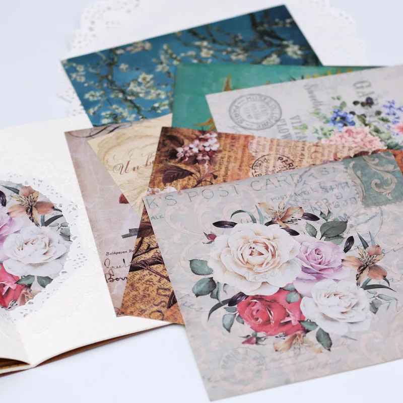8pcs Set Vintage Gothic Flower Big Background Sticker For Diary