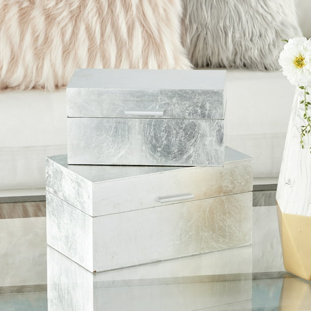 Cosmoliving Large Rectangular Glam Metallic Silver Leaf Decorative