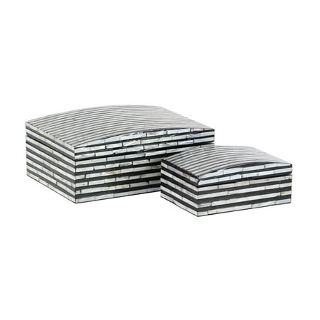 Decmode Natural Wood And Shell Rectangular Black And White Striped
