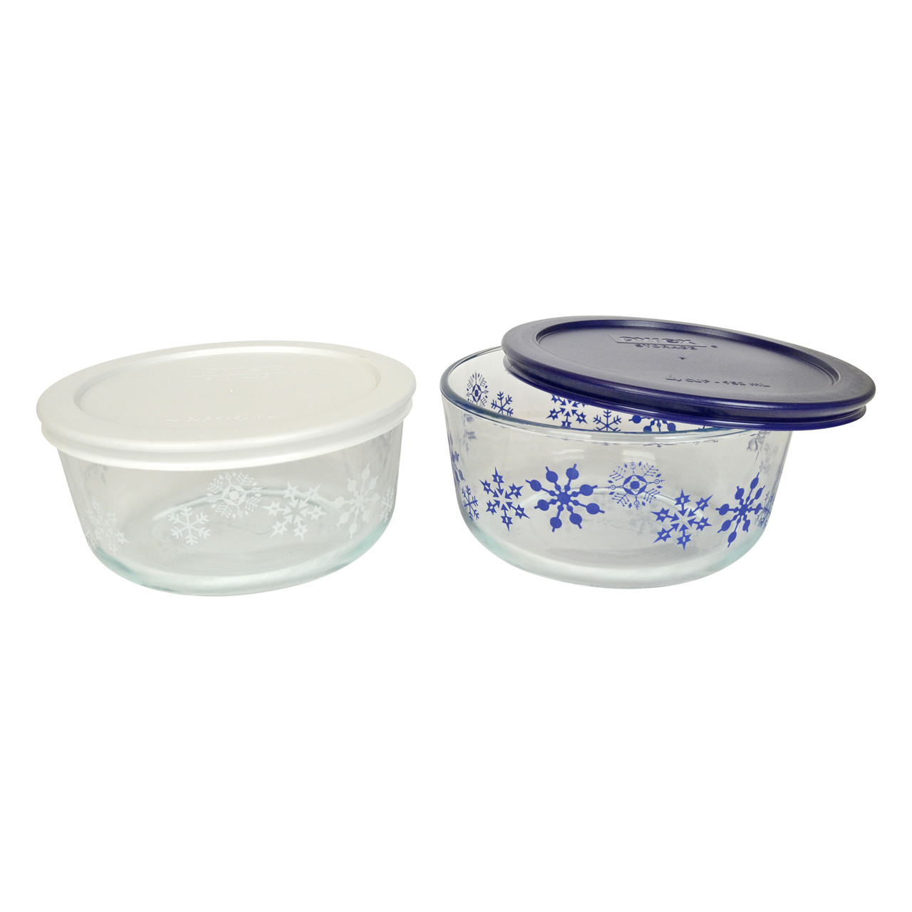 Pyrex 4 Cup Snowflake Glass Bowl Lid 2 Pack Set Helton Tool Home